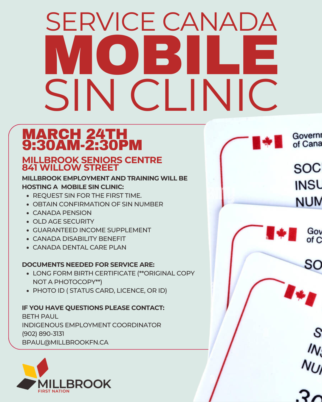 Millbrook Employment and Training will be hosting a Mobile SIN Clinic: